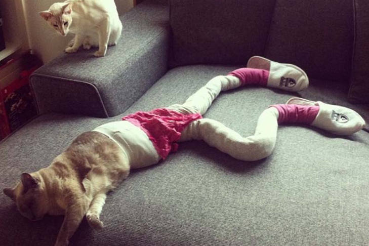 В 2013 году фотографии животных в элементах человеческой одежды стали трендом. Например, в январе был запущен и быстро набрал популярность блог в Tumblr под названием «Menswear Dog», авторы которого рекламируют мужскую одежду, наряжая в нее собаку породы шиба-ину. Тремя месяцами позже в китайской социальной сети Weibo появился мем с фотографиями собак в штанах, быстро распространившиеся и за пределы страны. В свою очередь, в сентябре о себе заявил блог Well-Dressed Animals, автор которого собирает изображения с «хорошо одетыми» животными. Теперь пришел черед кошки в колготках.
