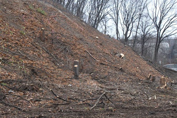 На Печерских склонах в Киеве уничтожают деревья (ФОТО)
