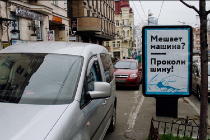 На днях неизвестный киевлянин не пожалел денег и разместил на ситилайте призыв «Мешает машина? Проколи шину!». Как сообщили «Сегодня» в одном из рекламных агентств, минимальная цена за такую рекламу — 400—500 грн за месяц, но добавили, что они бы подобный заказ не взяли. Юрист Владимир Столитний говорит, что размещать такую рекламу — небезопасно, так как она содержит призыв к незаконному деянию.