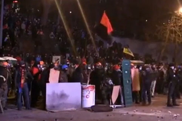 Более 15 часов продолжаются столкновения демонстрантов с бойцами внутренних войск и спецподразделения «Беркут» в центре Киева на улице Грушевского.