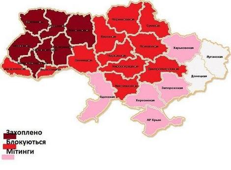По состоянию на 25 января митингующие захватили госадминистрации в 8 областях