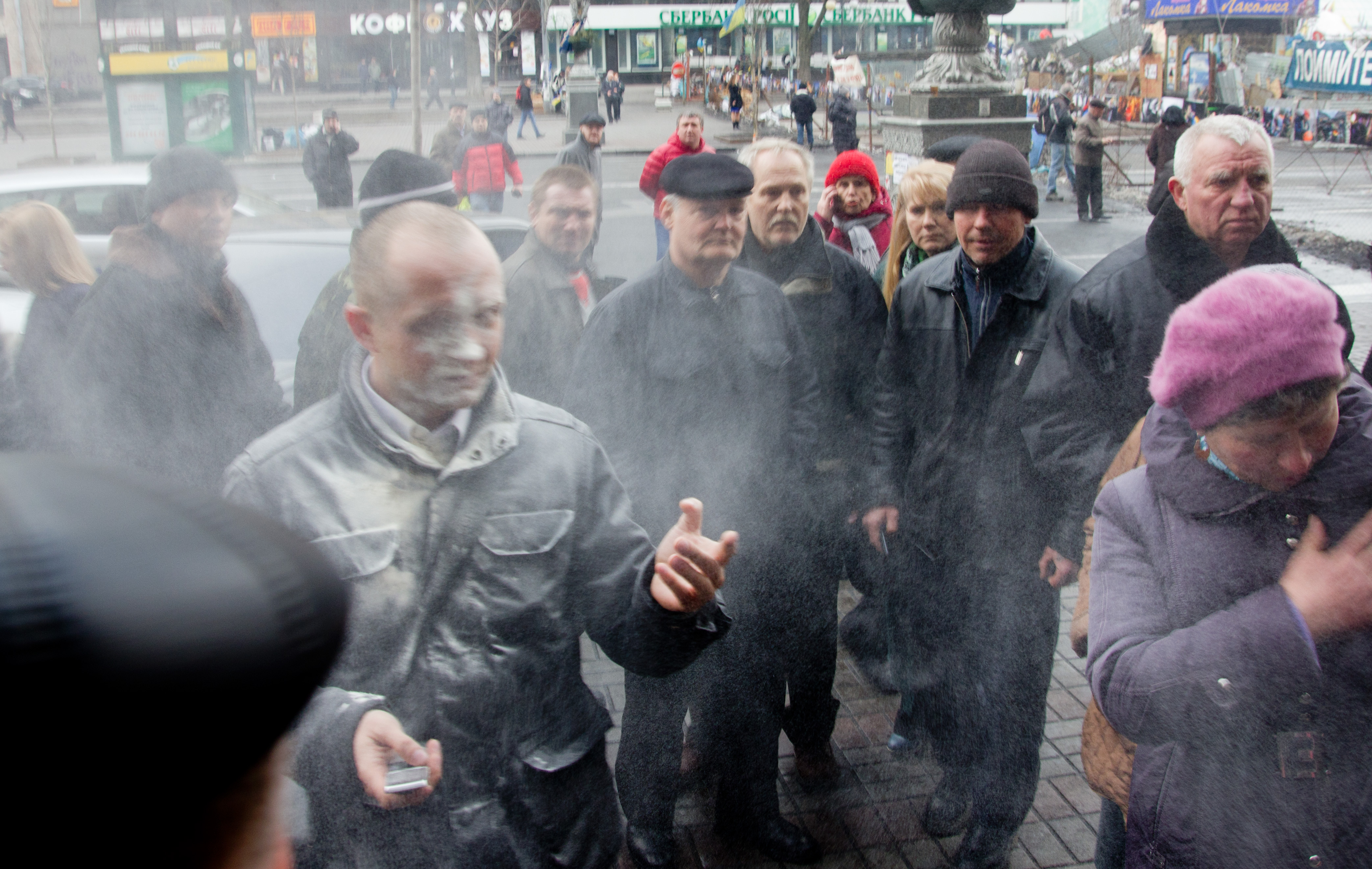 Працівники заводу «Уманьхліб» на Майдані обсипали Максима Полякова мукою