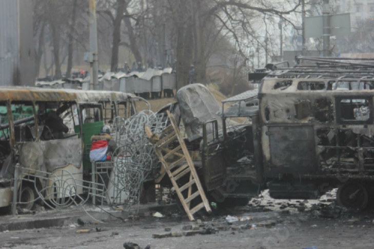 Вечером в субботу, 15 февраля, в баррикадах на ул.Грушевского с помощью экскаваторов сделали проезд – при этом мешки не вывозили, а перетаскивали к краям. По словам активистов, на ул.Грушевского планируют создать КПП – «такой, как на Владимирской горке».