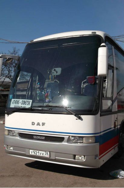 О том, что российские «туристы» массово приезжают в Донецк накануне митинга за единство Украины, стало известно заранее. Донецкие активисты сфотографировали один из автобусов, на которых в город приехали граждане России. Автобус прибыл по адресу улица Гаражная, 1. Организатор поездки фирма «Волга – травел». Официальный маршрут Ессентуки – Афины, сообщает Gazeta.ua.