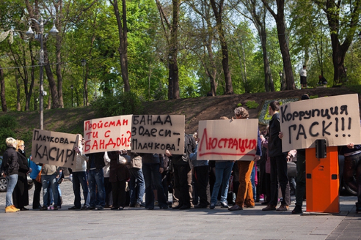 В Киеве сегодня несколько десятков членов общественной организации «Відкрите коло» устроили акцию протеста против назначения члена одесской ячейки Партии регионов Татьяны Плачковой на должность заместителя руководителя Государственной инспекции архитектурно-строительного контроля (ГИАСК).