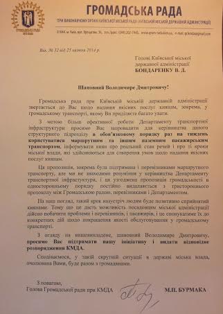Общественный совет при КГГА попросил Владимира Бондаренко обязать чиновников из департамента транспортной инфраструктуры раз в неделю ездить общественным транспортом. Соответствующее обращение к главе КГГА было направлено 25 апреля.