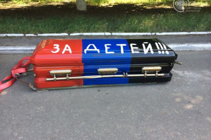 Жители Мариуполя подарили террористам ДНР гроб (ФОТО)
