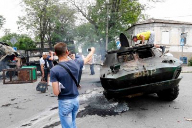Фото из взятого под контроль силами АТО Мариуполя: подбитые БТРы и любопытные жители
