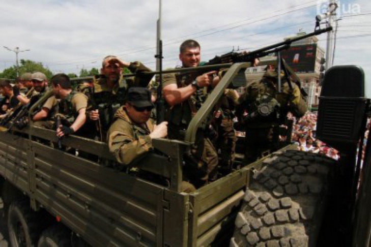 Как утверждают очевидцы, один из грузовиков с вооруженными людьми и БТР остановились на пересечении бульвара Шевченко и Шахтостроителей, а два КамАЗа с символикой батальона «Восток» и зенитным орудием проследовали по проспекту Ильича в сторону Мотеля.