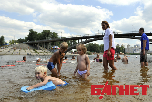 Яна с Денисом поплавать в Днепре так и не решились, а зашли в воду лишь по колено. Зато детишки резвились на славу.