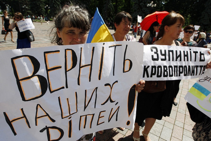 Около сотни женщин пришли под военкомат Борисполя требованиям: «Нет войне», «Наши дети не мясо», «Депутаты нет войне - будет мир на всей земле», сообщает УНН.