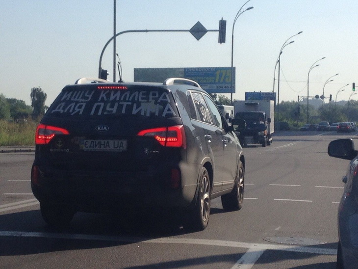 Украинец, которого достала «братская» политика Кремля в лице президента РФ Владимира Путина, ищет киллера. Соответствующее сатирическое объявление заметили на одном из внедорожников, разъезжает по улицам Киева, передает корреспондент Львовского портала.