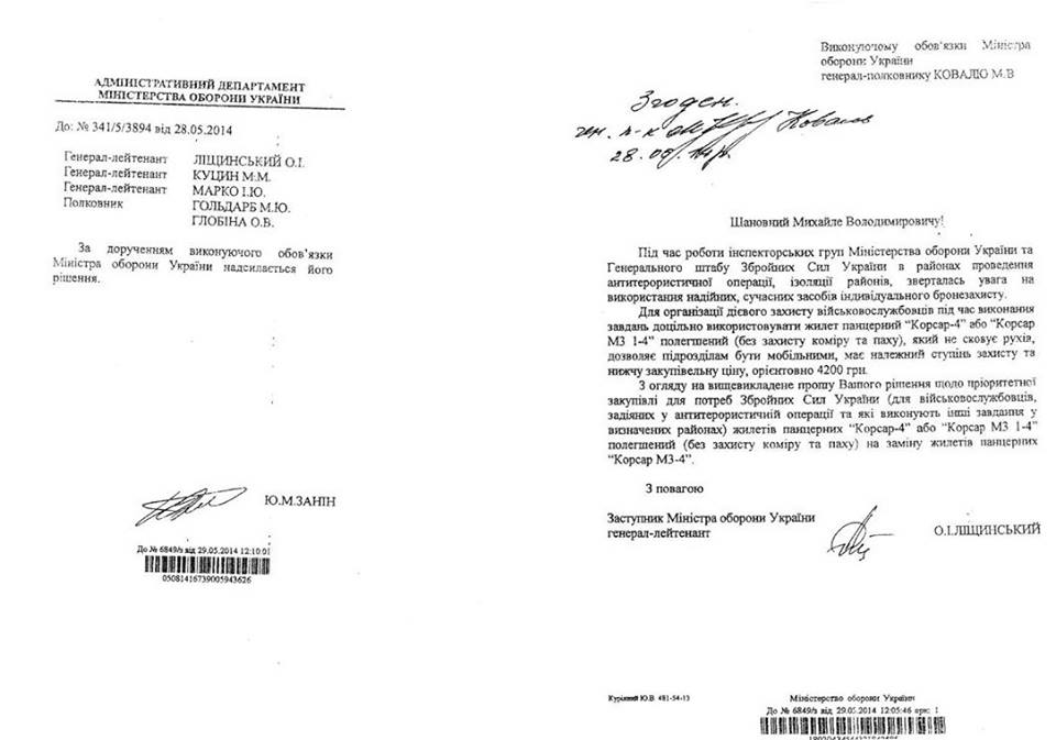 Стало известно, кто из чиновников Минобороны закупил некачественные бронежилеты для АТО (ДОКУМЕНТЫ)