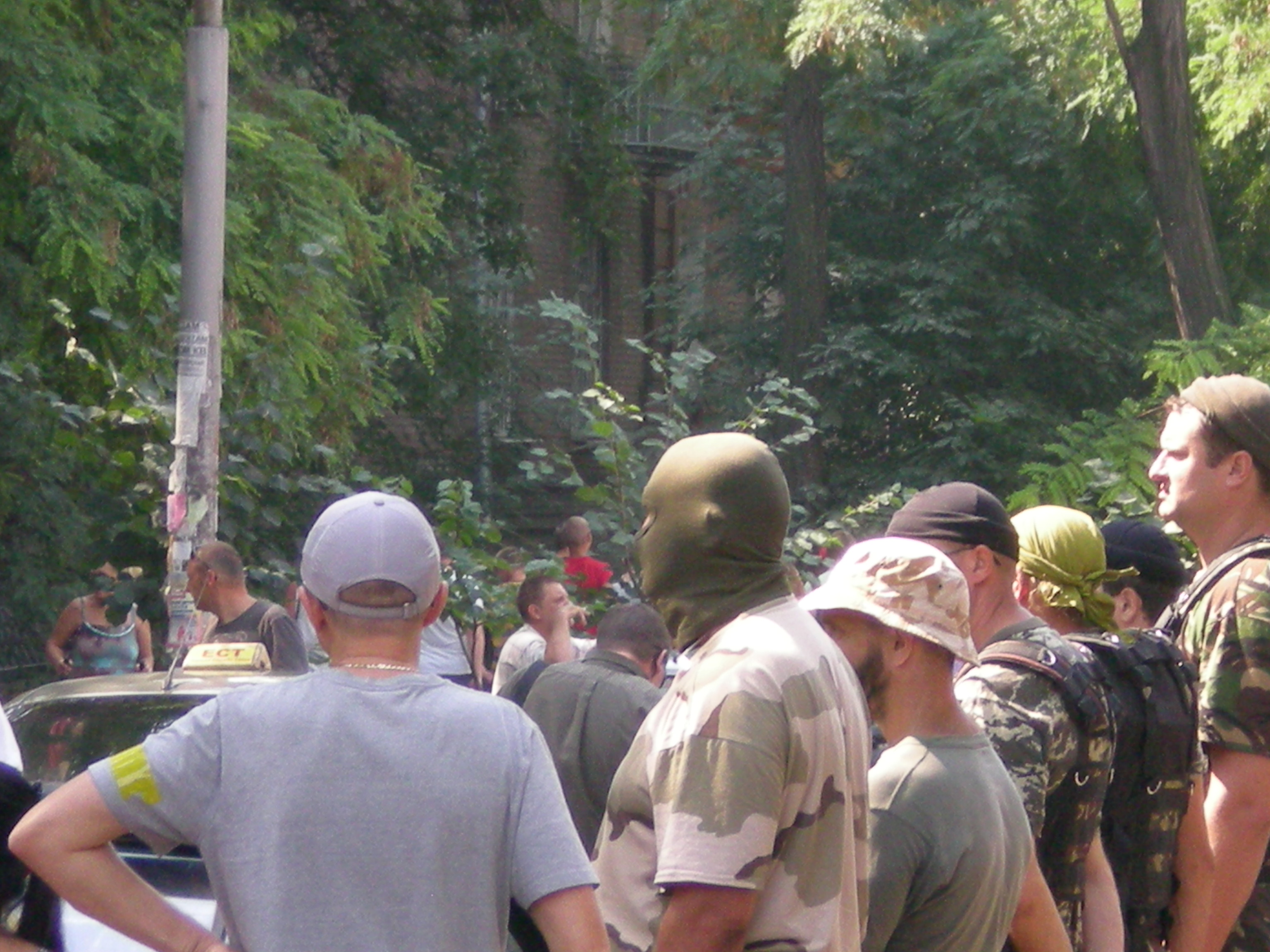 По словам людей, на них набрасывались, толкали, угрожали дубинками и грубо тянули подальше от здания военкомата. В результате нападения митингующие получили легкие телесные повреждения и большой испуг. Представители Автомайдана, Женской сотни, Самообороны Майдана и общественных организаций себя не сдерживали: обвиняли митингующих в продажничестве и пособничестве сепаратистам.