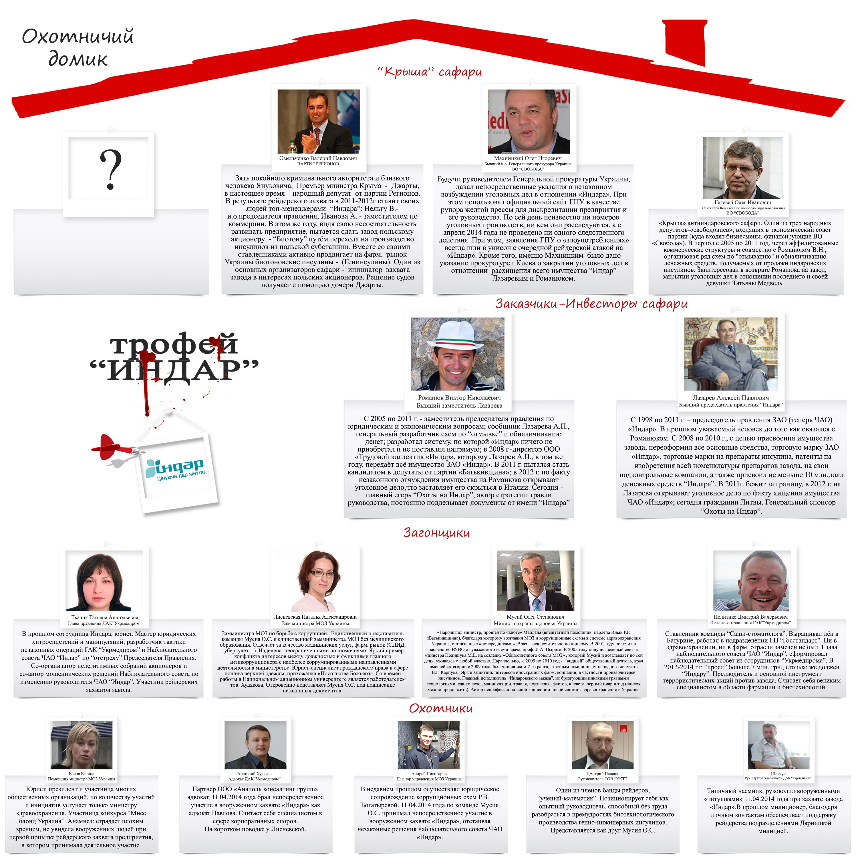 Когда о рейдерском захвате открыто заявило руководство компании «Индар» в апреле текущего года, при этом указывая на пособничество Министра здравоохранения Олега Мусия, нашим журналистам тоже не хотелось в это верить. Поэтому мы начали проводить собственное расследование. Стоило только копнуть и потянуть за почти прозрачные ниточки – и мы наткнулись на целое логово охотников, которые сами работать не хотят, а желают быть «крышей» и стричь «купоны»…