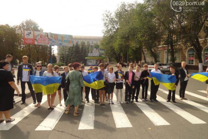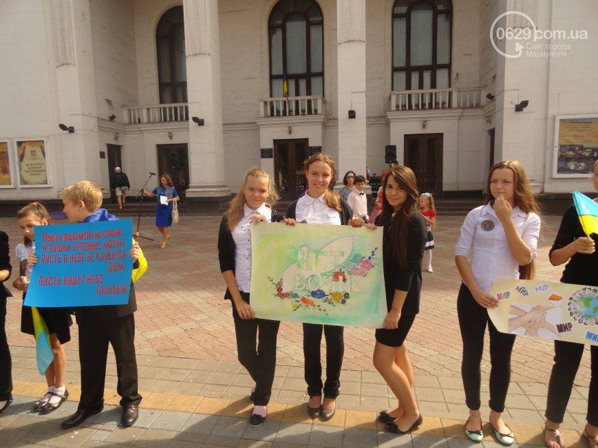 В рамках акции школьники Мариуполя перекрыли движение в центре города. На театральной площади собралось более 500 детей с государственными флагами Украины, плакатами, рисунками в защиту мира, бумажными белыми голубями. Детей сопровождали педагоги, директора школ, руководители управления образования горсовета.