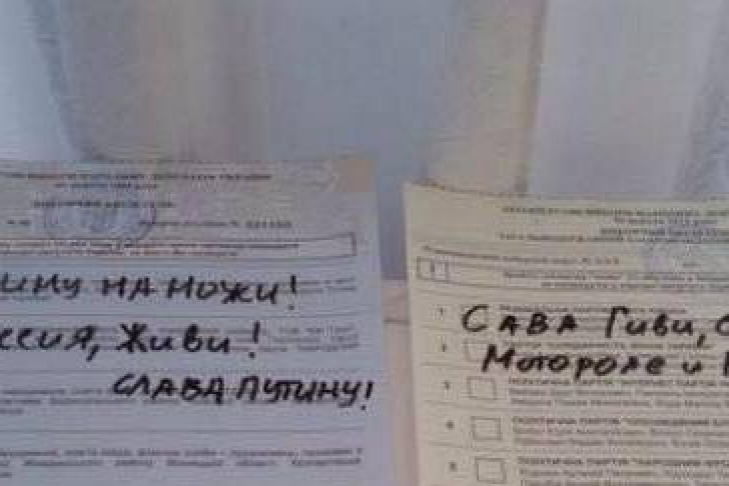 Судя по надписям, в основном избиратели на Донбассе портили бюллетени.