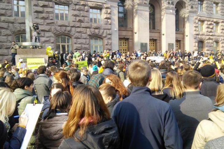 Под зданием КГГА проходит акция "Верните, "Жовтень"