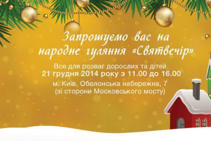 Соціальний проект «Створюємо Україну разом» за сприяння таких організацій, як Благодійний фонд «Центр Милосердя», видавництво «Колесо Жизни», «Академия реальной жизни», FreeArt запрошує киян і гостей столиці, сім’ї, друзів і знайомих на ДОБРОЧИННЕ свято «СВЯТВЕЧІР», що відбудеться 21 грудня 2014 року за адресою: м. Київ, Оболонська набережна, 7 (зі сторони Московського мосту). Свято триватиме з 11:00 до 16:00, вхід вільний.