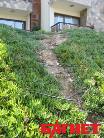 На территории отеля много зелени. Но вся она держится на системе капиллярного полива. По земле под травой тянутся трубы практически по всей территории