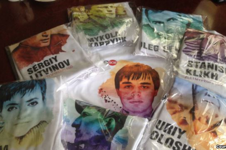 В Украине гражданская инициатива «Евромайдан SOS»и молодые украинские художники из творческого союза «BRATY» создали серию футболок в поддержку украинских политических заключенных в России.
