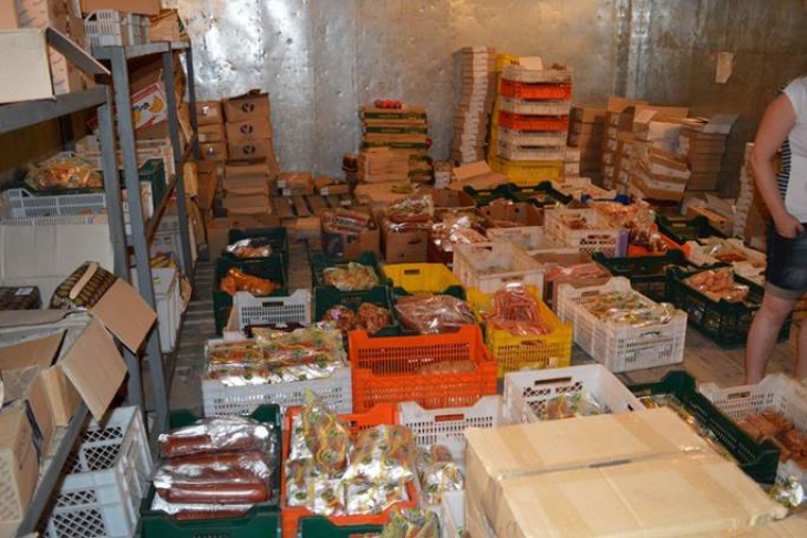 Сотрудники Службы безопасности Украины обнаружили в Северодонецке товарную базу, где хранились недоброкачественные продукты питания, которые планировалось доставить для нужд террористов с последующей перепродажей мирному населению.