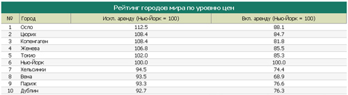 В итоге самыми дорогими признаны Осло, Копенгаген, Токио, Женева, Хельсинки, Нью-Йорк, Париж и Дублин. Но там же и самые высокие зарплаты. Самым дешевым проживание оказалось в Куала-Лумпуре, Маниле, Дели и Мумбаи, где и зарплаты низкие.