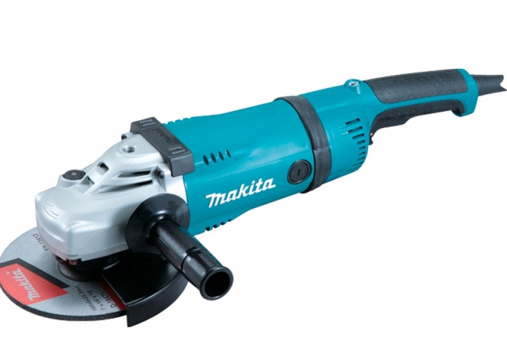 1. Makita GA9040RF01. Обладая впечатляющей мощностью в 2,6 кВт, эта двуручная профессиональная модель характеризуется высоким числом оборотов и компактностью. Инструмент позволяет использовать диски диаметром 230 мм. Благодаря зигзагообразному покрытию якоря и усиленной изоляции стартера, аппарат отлично подходит для работы в экстремальных условиях, легко распиливая и шлифуя металл, кирпич, бетон и плитку.