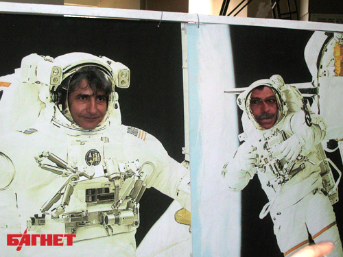 Остальные звёзды спешили запечатлеть себя на фоне ракет и спутников. Особо разрезвился Анатолий Пашинин, известный по сериалу «Ундина». Для эффектного снимка он надел на голову один из ценных экспонатов – настоящий шлем космонавта.