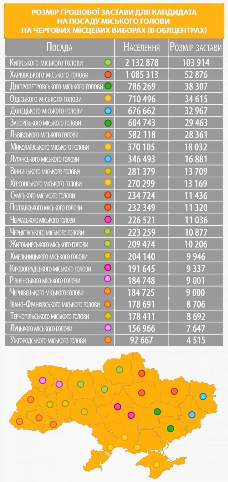 Чтобы стать кандидатом в мэры любого города, желающий должен внести деньги. Цена вопроса зависит от количества населения в городе.