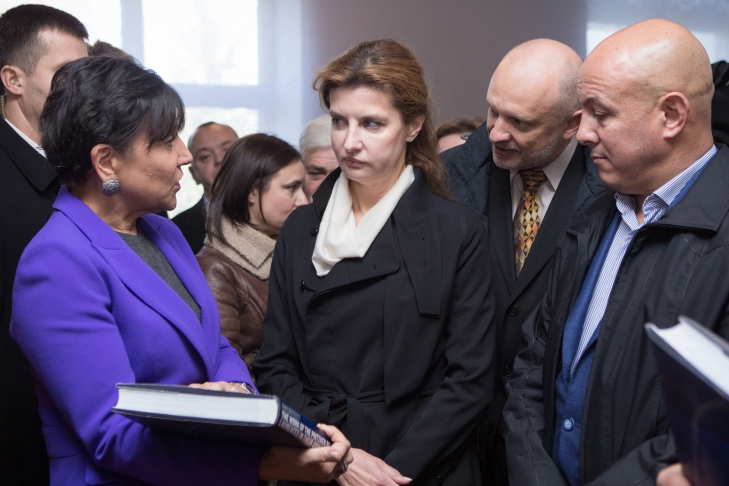 На згадку про зустріч пані Порошенко та пані Пріцкер подарували шкільній бібліотеці книги, які допоможуть дітям стати освіченими, вільними та національно свідомими громадянами.