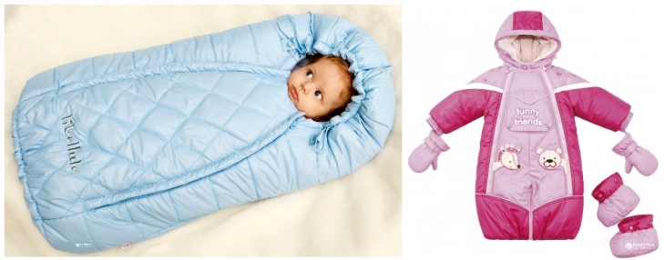 Деткам постарше может подойти прогулочный конверт с рукавами. У них также есть капюшон на затяжках, удобная застежка-молния. К рукавам крепятся варежки.