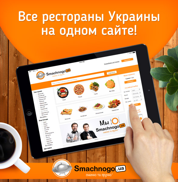 Создатели нового сервиса заказа еды online уверены, что Smachnogo.ua — это удобно, выгодно и в ногу со временем.