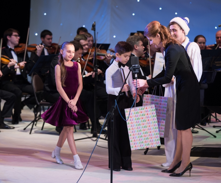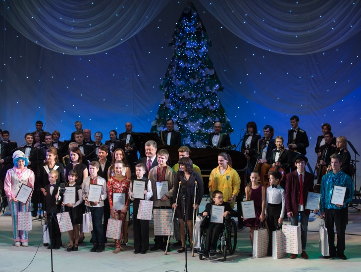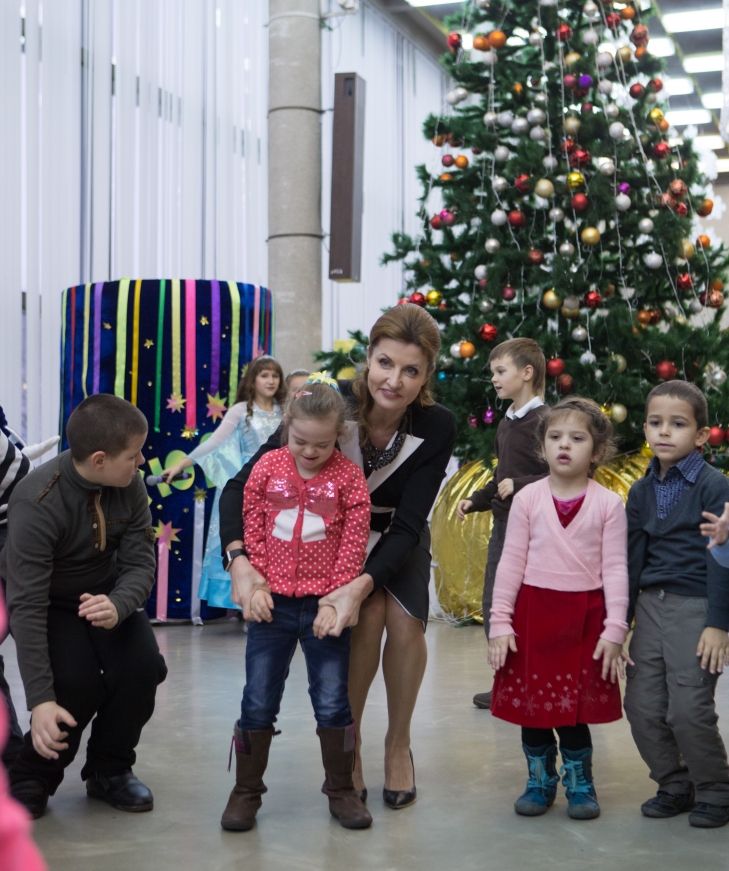 На передноворічне свято у Київський палац дітей та юнацтва пані Марина запросила близько 400 дітей з особливими потребами з Києва та Київської області, на яких чекали Святий Миколай, ігри, забави, а також – концерт талановитих дітей і виступ Національного президентського оркестру України.