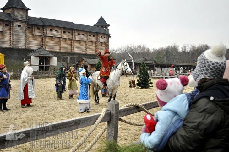 А тем временем, на главной площади «Парка Киевская Русь» (ристалище) разворачивалось красочное новогоднее действо с участием Деда Мороза и Снегурочки, княгини Зимы и многих других сказочных новогодних персонажей. Театрализованная программа была наполнена детскими играми и танцами.