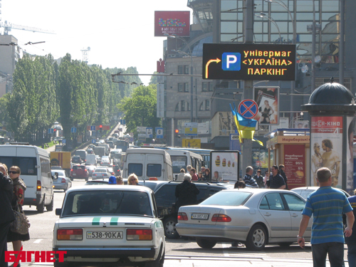Пока же щит, который киевские водители уже окрестили «таблом Черновецкого» рекламирует парковку возле универмага «Украина».