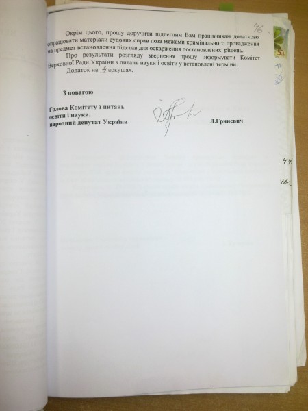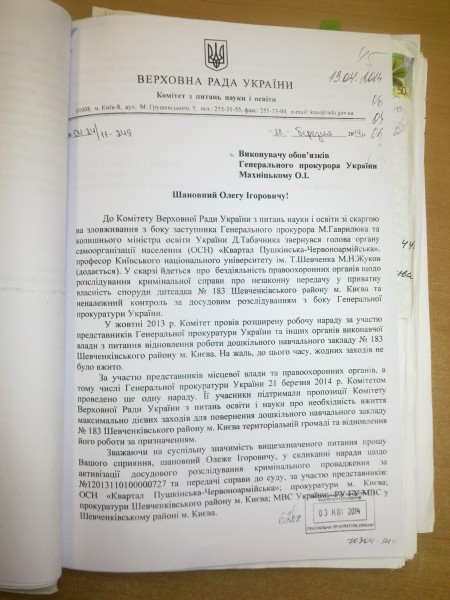 Как известно, второе дыхание (после полностью проигранной Жуковым первой судебной тяжбы) дело «садика №183», получило после обращения в Генпрокуратуру Народного депутата Украины Лилии Гриневич, к тогда еще генпрокурору Олегу Мохницкому. Гриневич, предлагая генпрокурору обратить внимание на 183-й садик, ссылалась на вездесущего председателя домкома Жукова.