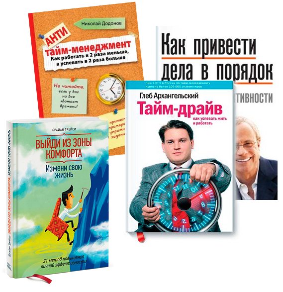 Особенно актуальная, но болезненная для многих тема — тайм-менеджмент. Проще говоря, организация времени. В числе популярных произведений 2015 года можно упомянуть "Тайм-драйв. Как успевать жить и работать" Глеба Архангельского. Это свод практических советов и методик, которые могут помочь разобраться с постоянно накапливающимся ворохом дел. Здесь собрано немало проверенных рекомендаций по управлению своим временем. Каждый может выбрать для себя наиболее действенные, соответствующие его склонностям и образу жизни.