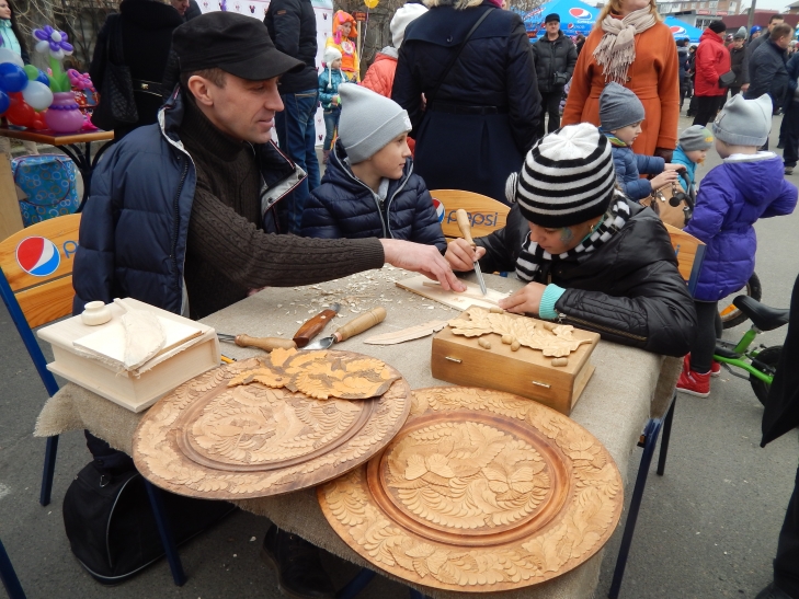 Охочим долучитися до народного мистецтва пропонували спробувати себе у майстер-класах з різьблення по дереву, розфарбовування гіпсових фігурок, створення ляльки-мотанки та паперових птахів тощо.