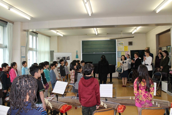 Пані Марина разом із директором школи пані Ясуко Цутія обговорили питання навчання дітей з особливими потребами у загальноосвітніх школах. Директор розповіла, що в очолюваному нею закладі навчаються діти з синдромом Дауна, аутизмом та ДЦП. За словами пані Ясуко, в школі ефективно використовується спільне навчання дітей з обмеженими можливостями разом з дітьми, що не мають таких обмежень.