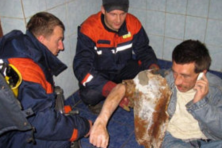 Спасатели выдолбили унитаз из пола. Но с руки пострадавшего чугунное изделие все равно не снималось.