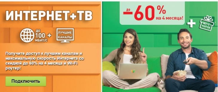 Пакеты, доступные в рамках акции Интернет+ТВ — «Осінній ТБ+100» и «Осінній HD+100» — включают пользование ТВ и тюнером, неограниченный объем трафика, а также предоставление роутера по символической цене 10 копеек в месяц. «Осінній ТБ+100» включает каналы пакета «Стартовый», акционная стоимость составляет 65 грн/мес, после акции — 155 грн.