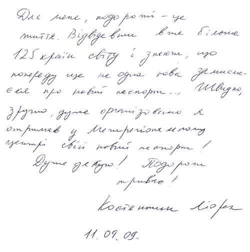 С отговоркой насчет «отсутствия бланков», в частности, столкнулась украинка Ольга, живущая в Германии. Поэтому она специально выкроила время и прилетела в Украину, чтобы оперативно оформить «пропуск за рубеж», иначе, как она написала в книге отзывов, «еще долго была бы без паспорта» (см. ниже ниже фото отзыва). Подобных случаев на «памяти» Центра, по словам Михаила Гуцалюка, очень много.