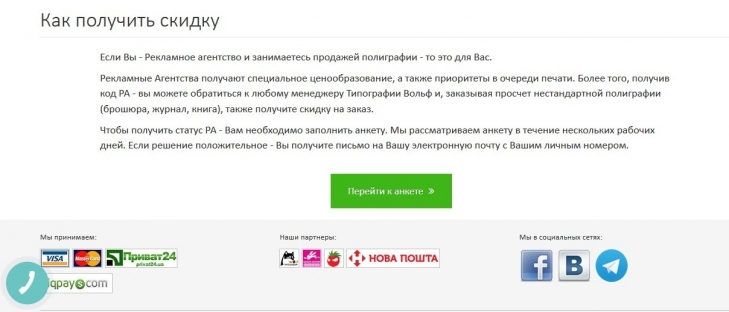 Работа Интернет-магазина с представителями корпоративного бизнеса организована по правилам «потока». Предоставляя определенный уровень скидок корпоративным заказчикам и посредникам, специалисты Всеукраинской сети типография «Вольф», в свою очередь, ожидают от клиентов грамотной подготовки макетов. Взаимодействие с клиентами сегмента В2В происходит, как правило, исключительно онлайн, а офлайн поддержка сведена к минимуму (принцип Web-to-Print – в действии!).