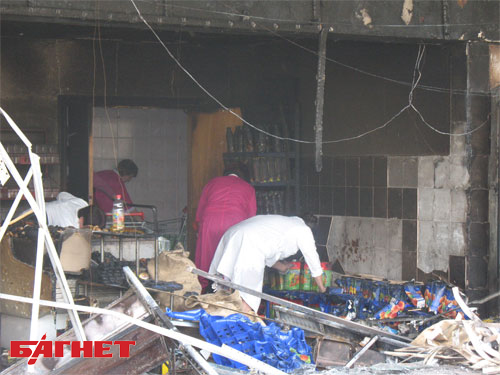 Пожар начался в половине четвертого ночи. Пока пожарные тушили огонь, милиционеры ходили по квартирам девятиэтажки, к которой был пристроен магазин, и будили жителей, чтобы те готовились к возможной эвакуации. К счастью, покидать свои квартиры людям не пришлось - жилье при пожаре не пострадало, однако магазин спасти не удалось. Что именно послужило причиной возгорания, работники магазина не представляют. В столичном МЧС тоже пока не комментируют происшедшее.