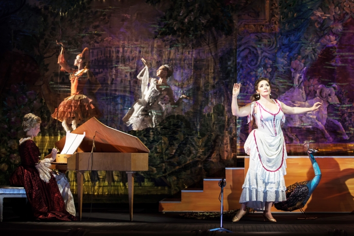 Так Тамара Трунова, режиссер киевского Театра драмы и комедии на Левом берегу Днепра, подошла к воплощению оперы «Служанка-госпожа» очень креативно. Несмотря на то, что само действие происходит на небольшом cценическом пространстве "диван-лестница", мизансцены выстроены очень логично и живо. Обрамляющие действие «гобелены» - оживают благодаря хореографическим решениям Виктора Яременко – балетмейстера-постановщика спектакля. Танцевальные дивертисменты исполняют милые пасторальные персонажи, как бы сошедшие с «вышитых» полотен: пара оленей, птички, овечки. В постановке Труновой в сценическом действии участвуют и концертмейстеры Национальной оперы Украины. Причем, в буквальном смысле: клавесин, который обычно скромно прячется в оркестровой яме - обосновался на сцене, вместе с его очаровательной хозяйкой - Лианой Косович.