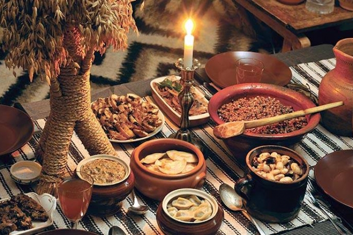 В понедельник, среду и пятницу полагается растительная пища без масла, а во вторник и четверг - с растительным маслом, в субботу и воскресенье, вплоть до 2 января, к ним прибавляется рыба.