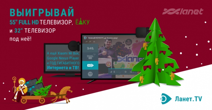 В качестве супер-приза в финале конкурса выступит 55″ FullHD телевизор 55F270T2 с приставкой Xiaomi Mi Box Android 6.0 TV и 17 месяцев гигабитного интернета + ТВ. Розыгрыш главного приза состоится 29 декабря 2016 г. в 12:00 в прямом эфире Lanet Streams HD на Ланет.TV. Более подробную информацию об акционных программах можно найти на сайте провайдера.