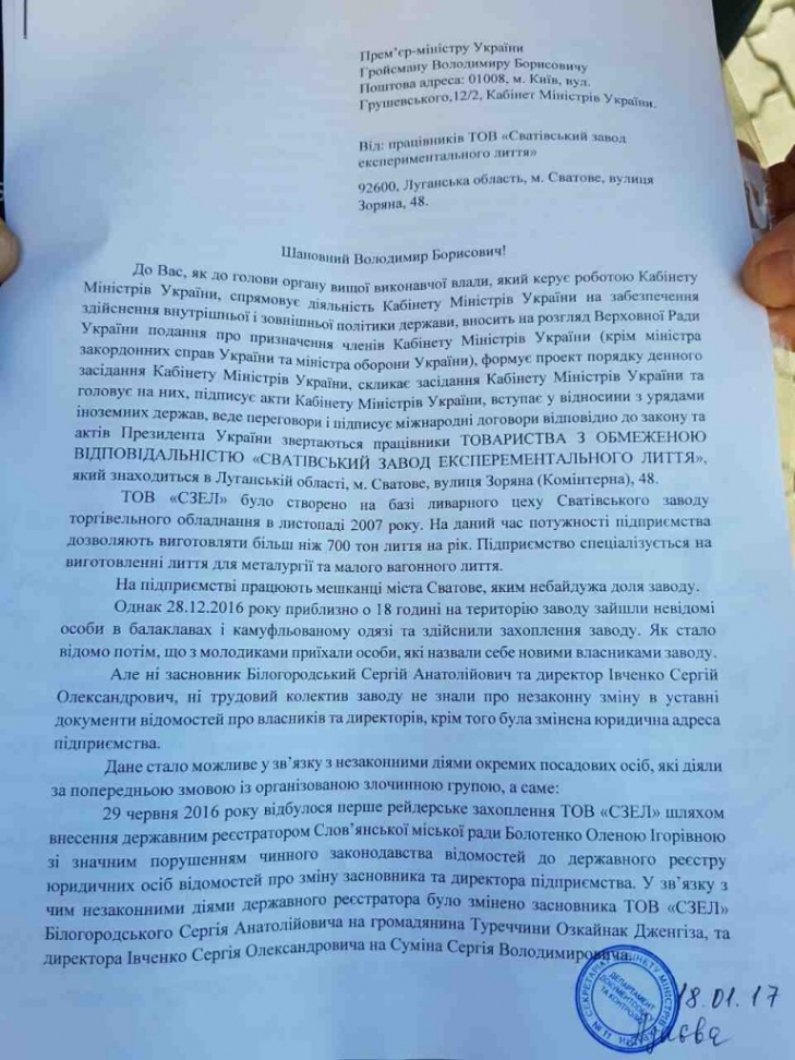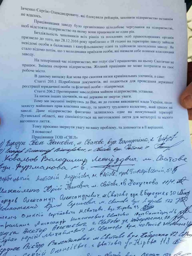 Предприятие уже второй раз за последние полгода захватывают рейдеры. «28.12.2016 года на территорию завода зашли неизвестные в балаклавах и камуфлированной одежде и осуществили захват завода … Потом с молодчиками приехали люди, которые назвали себя новыми владельцами завода», — идется в обращении митингующих.
