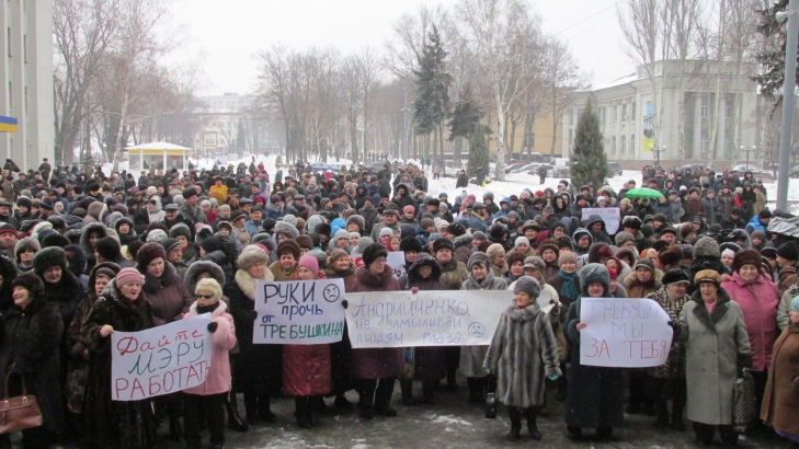 25 января более двух тысяч жителей Покровска (Донецкая область) собрались на митинг, чтобы выразить поддержку покровскому городскому голове Руслану Требушкину. Горожане обратились к Президенту, Премьер-министру, спикеру Верховной Рады и генеральному прокурору с требованием отправить в отставку местного прокурора Александра Щепихина, которого участники митинга обвинили в «политическом рейдерстве».